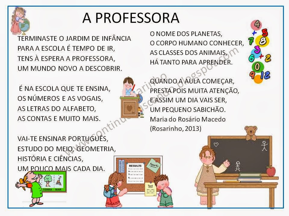 Aqui partilho uma poesia que escrevi e que se pode adaptar a outros grupos e outas crianças...