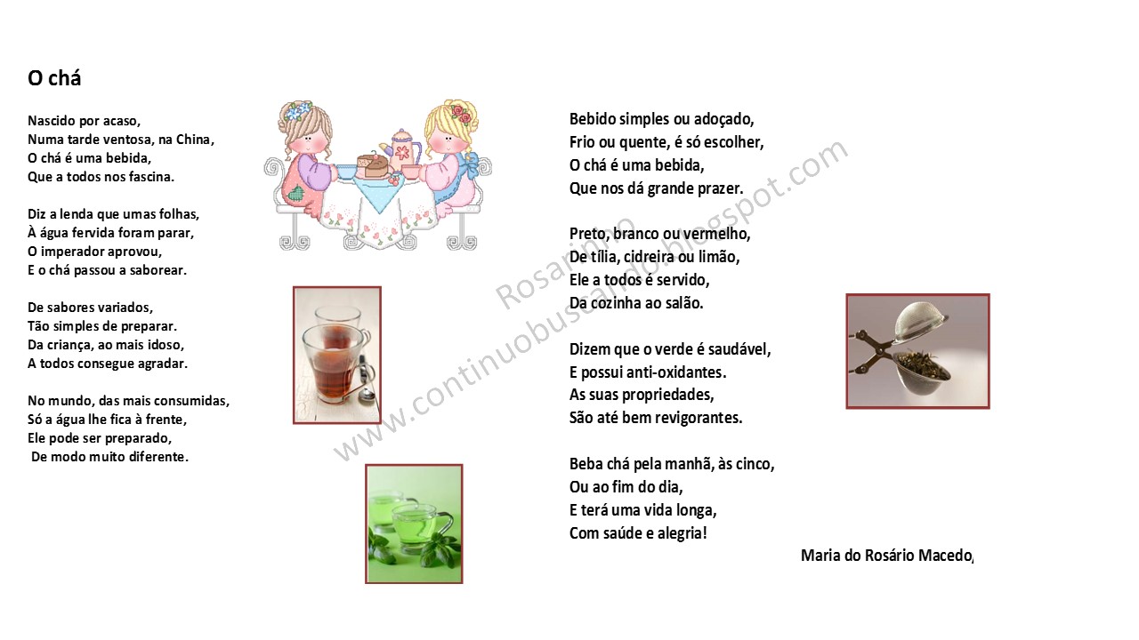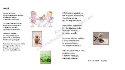 Hoje é dia mundial do chá e as rimas e poesias são uma ferramenta dos educadores , de que as crianças mais gostam e uma forma lúdica de aquisição de conceitos